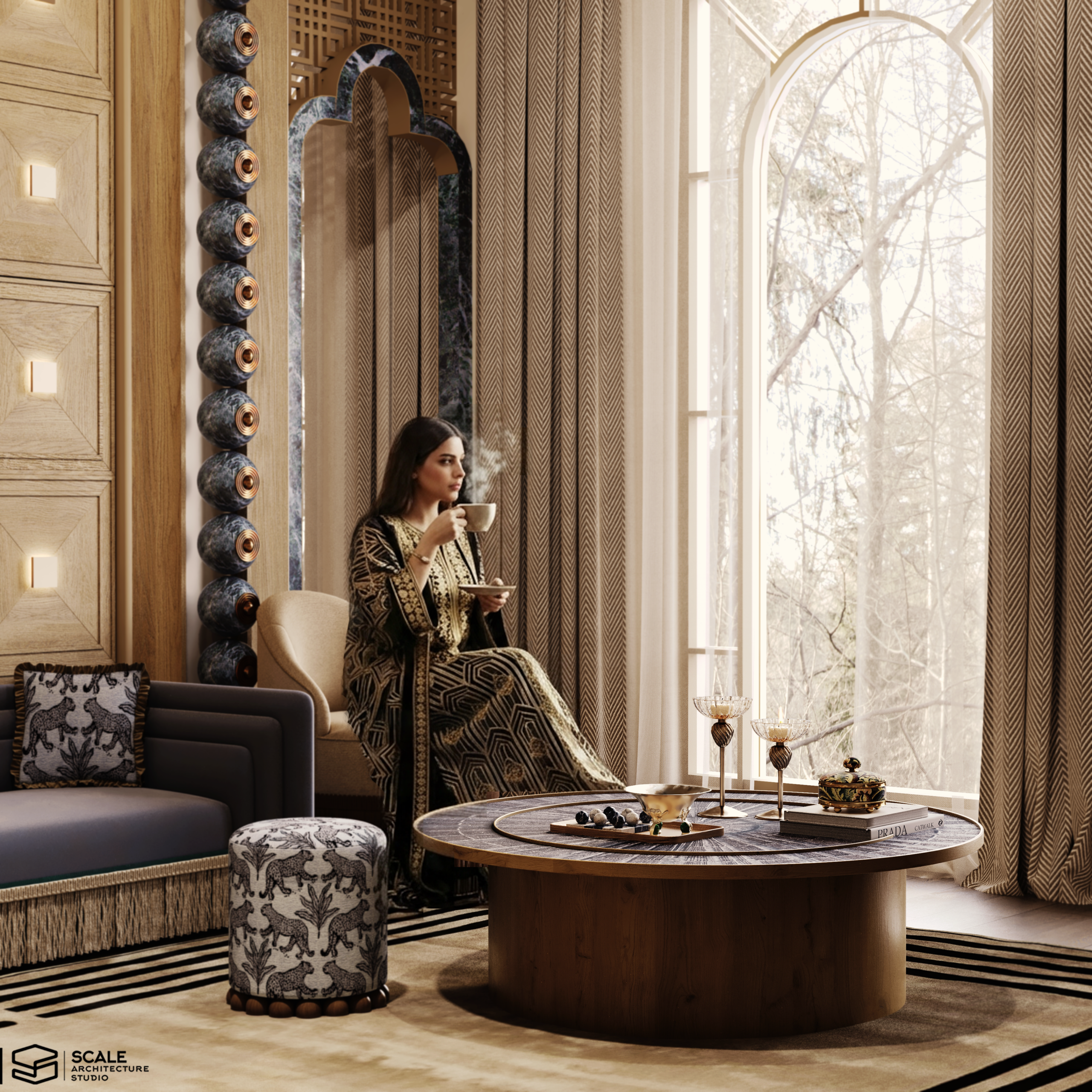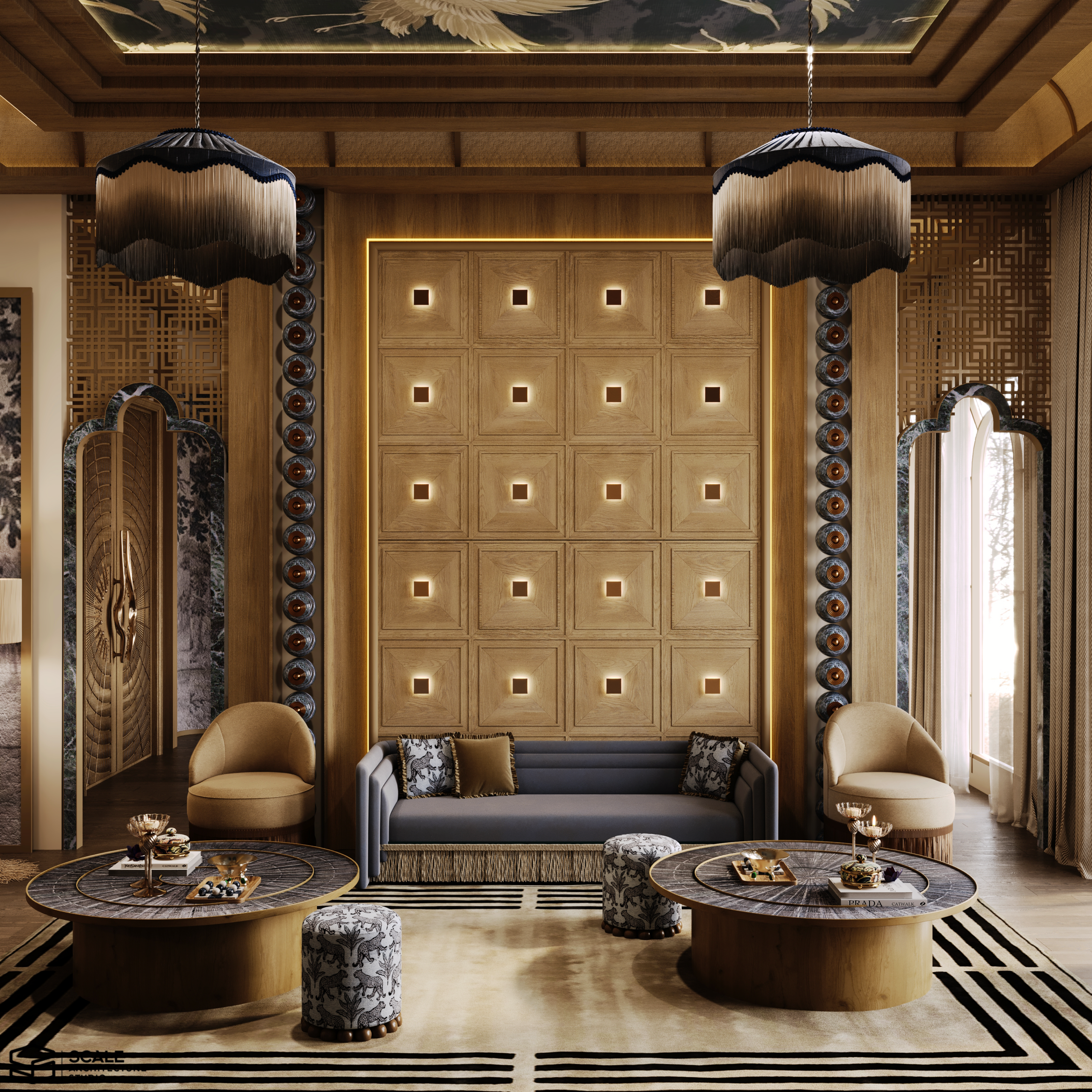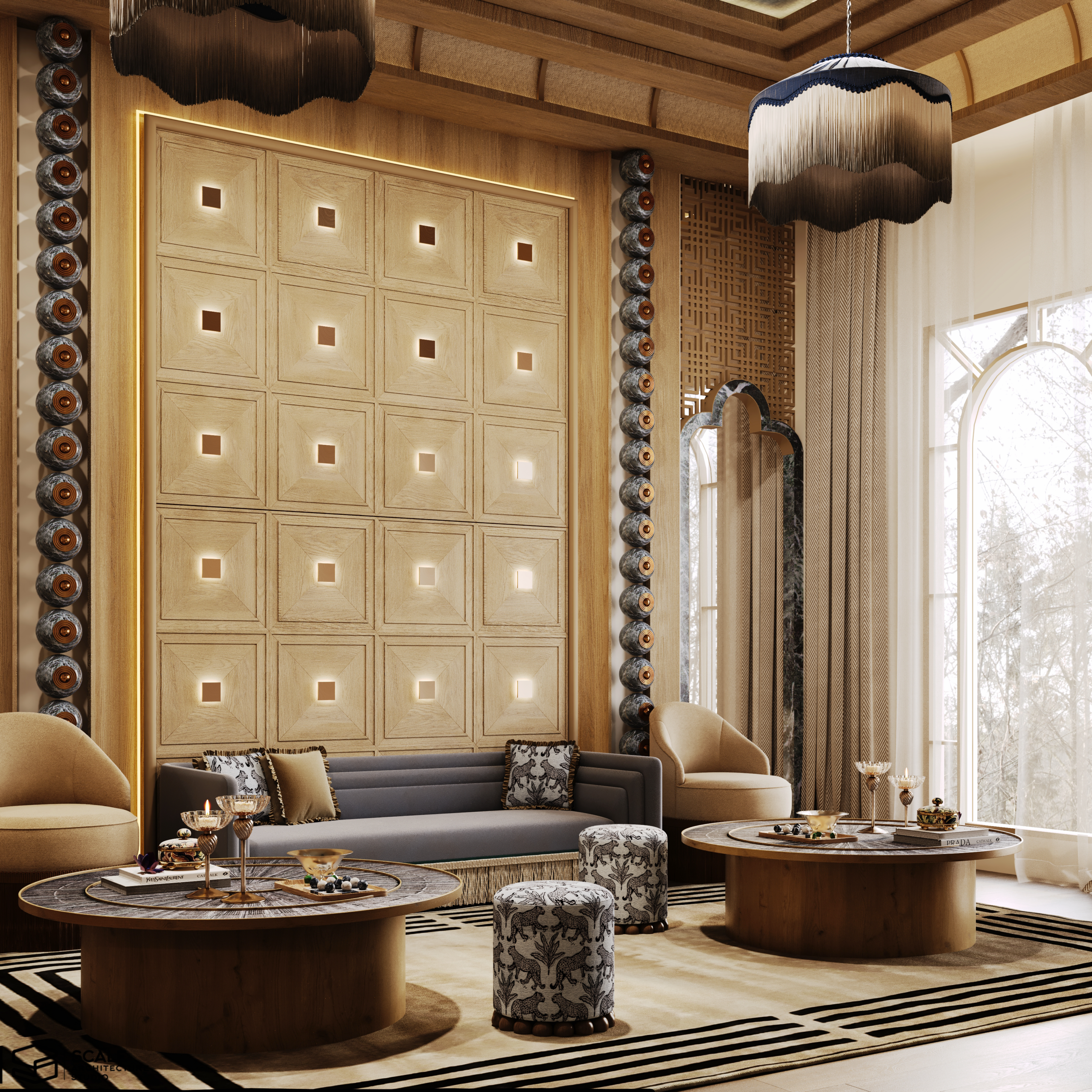 𝐃𝐞𝐬𝐜𝐫𝐢𝐩𝐭𝐢𝐨𝐧 : Our design for Majlis Design . 𝐀𝐫𝐞𝐚 : 40 m2 𝐒𝐭𝐲𝐥𝐞 : Art Deco .