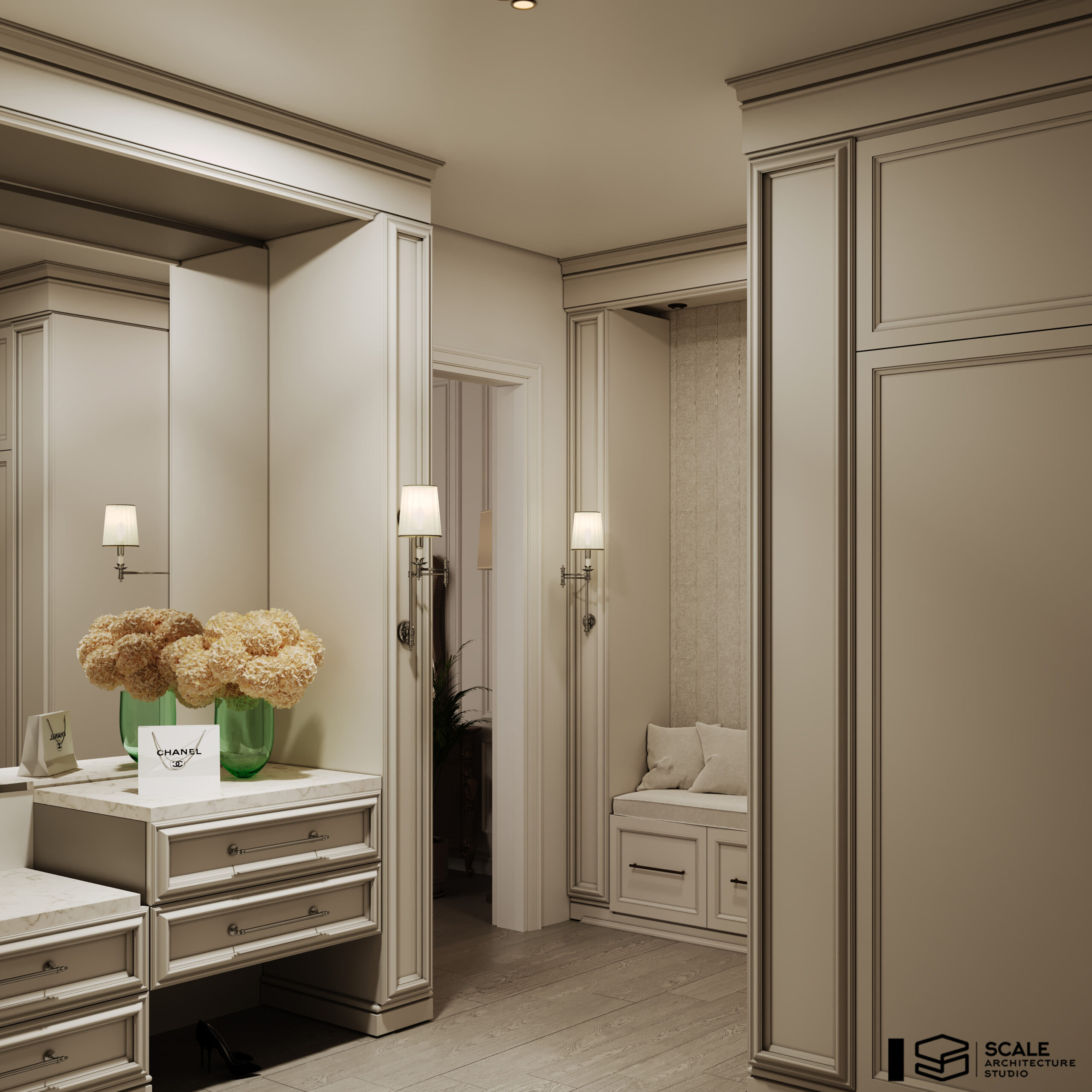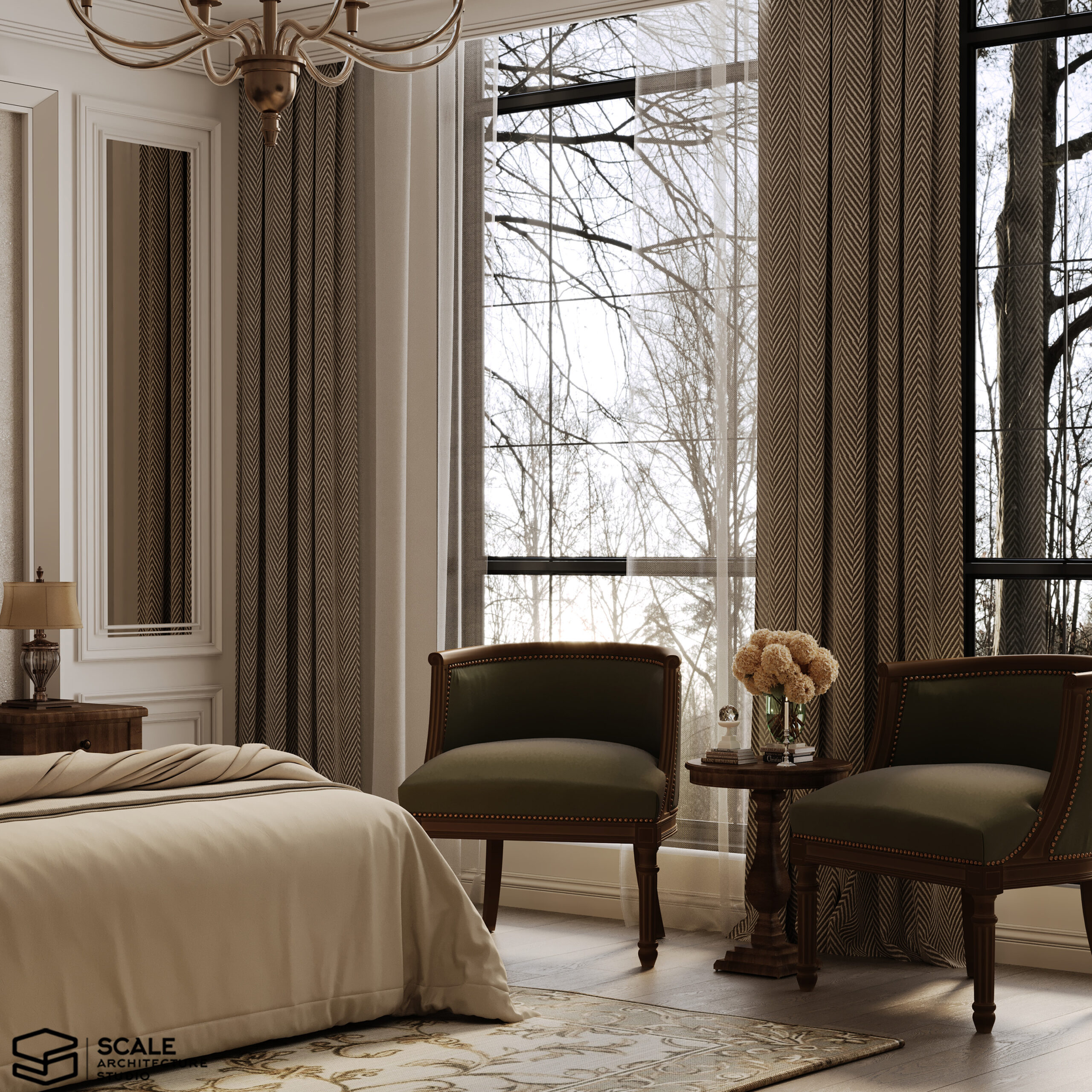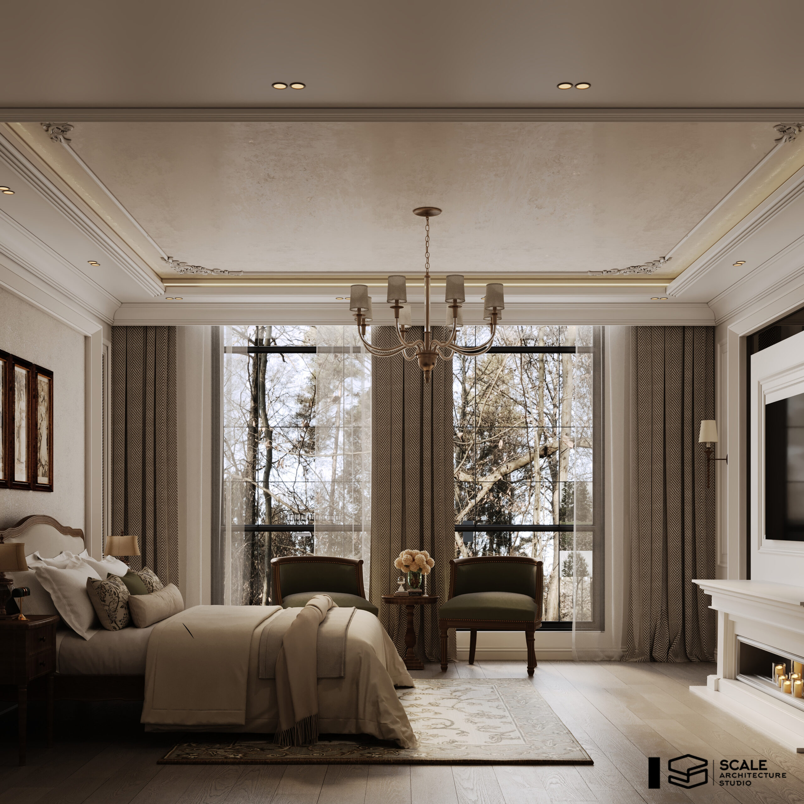 𝐃𝐞𝐬𝐜𝐫𝐢𝐩𝐭𝐢𝐨𝐧 : Our design for Master Bedroom with dressing & bathroom 𝐀𝐫𝐞𝐚 : 60 m2 𝐒𝐭𝐲𝐥𝐞 : Classic . 𝐒𝐨𝐟𝐭𝐰𝐚𝐫𝐞 : 3d max , corona render , photoshop 𝐋𝐨𝐜𝐚𝐭𝐞𝐝 : Quatar . 𝐘𝐞𝐚𝐫 : 2025